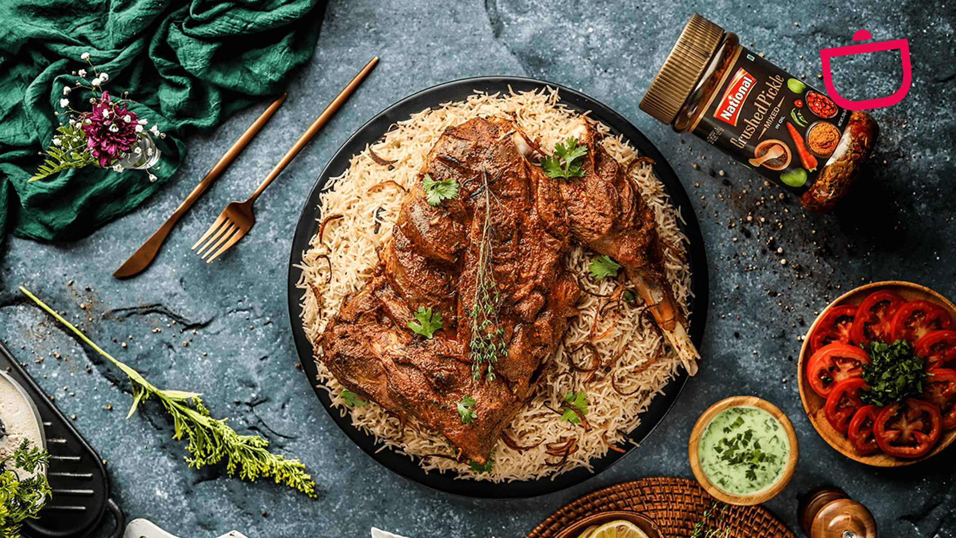 This melt-in-your-mouth roast makes the perfect dish to any dinner party or special occasion! With the perfect heat from National Spices, this raan will have tons of flavour but when you combine it with National’s crushed pickle as a secret ingredient, it will elevate your dish to another level. Crushed Pickle will add the perfect zing of spice and tanginess, and when you serve it with spiced Pulao rice, this roasted Raan will leave your mouth watering.