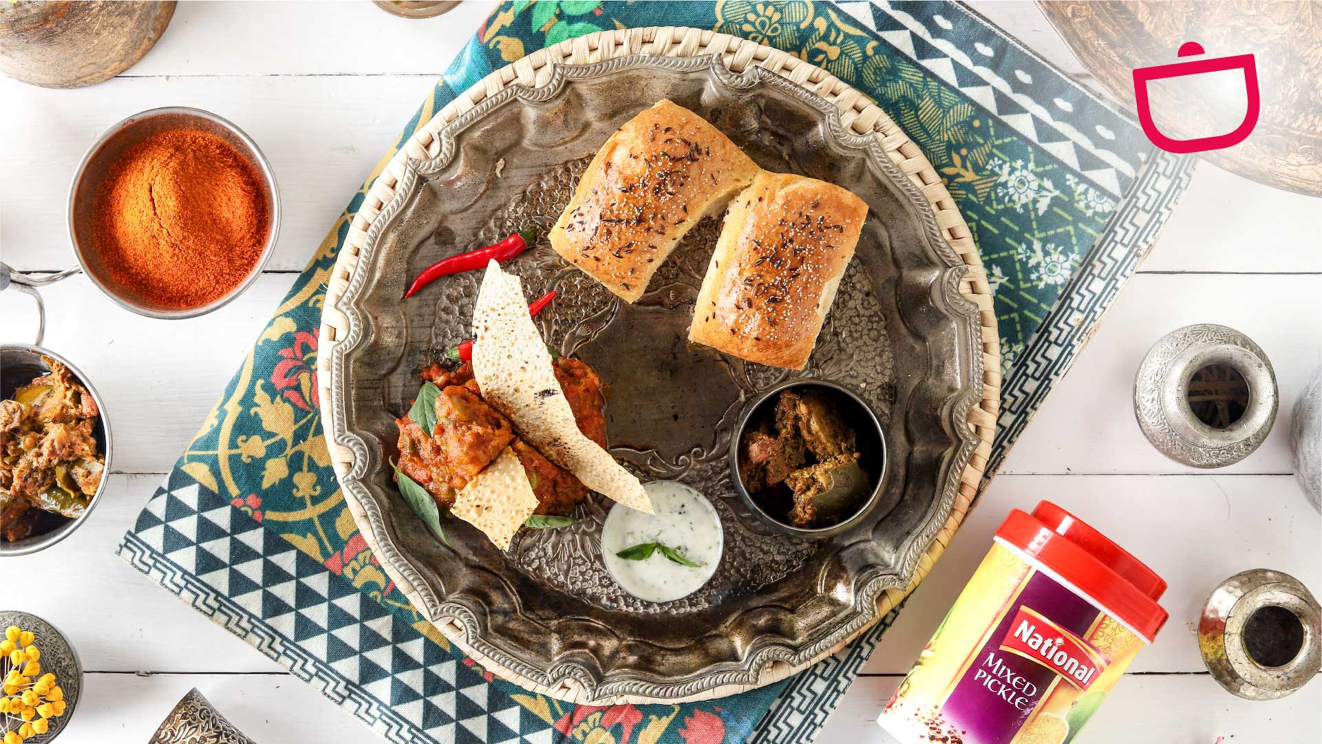 A spicy curry of mixed vegetables (bhaji) cooked in a special blend of National spices. The boiled and mashed veggies give it a buttery yet chunky texture while specially blended Pav Bhaji gives it an irresistibly mouthwatering aroma and flavor.