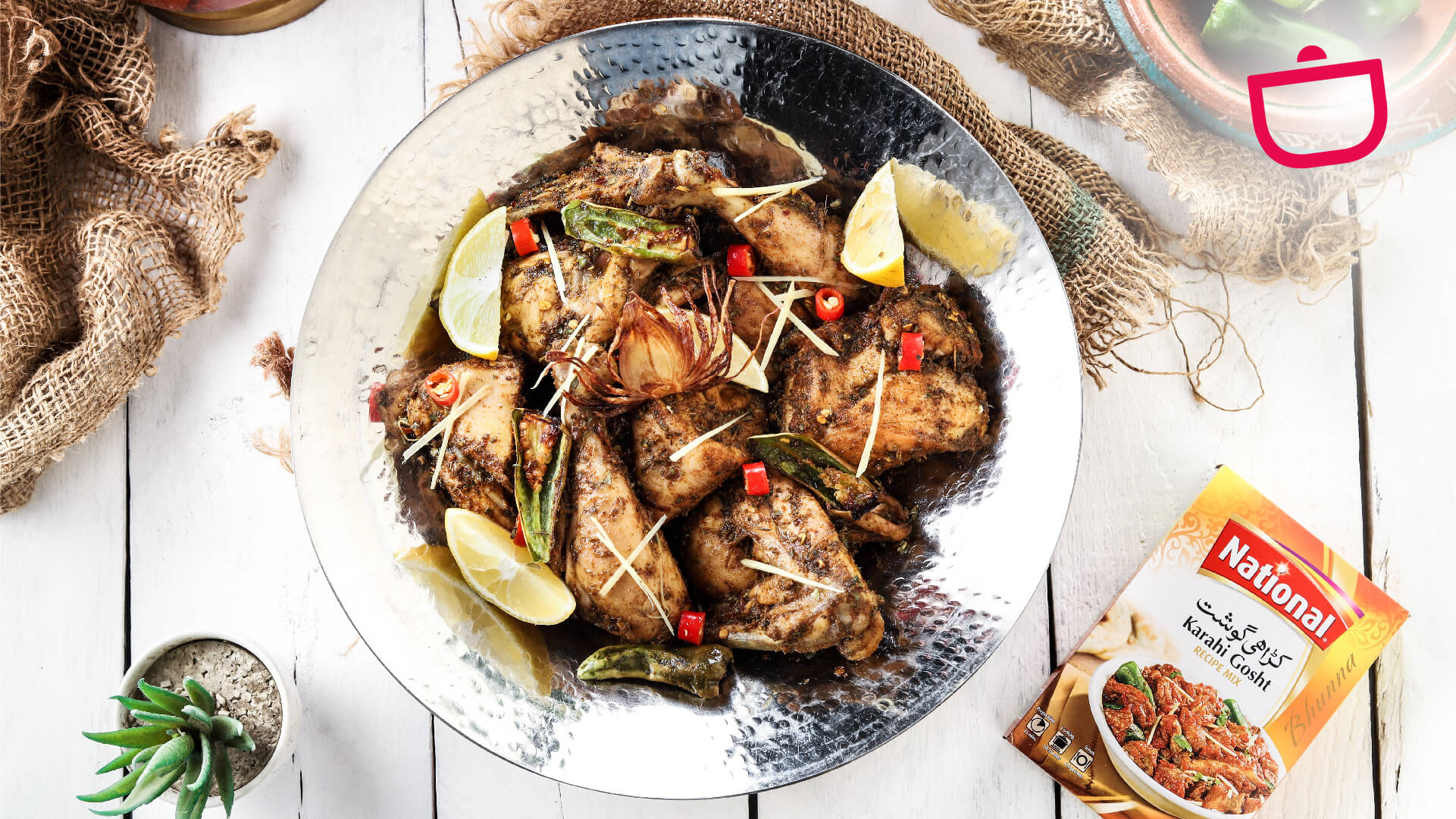 • Sprinkle some more National Karahi Gosht Masala and garnish with ginger.