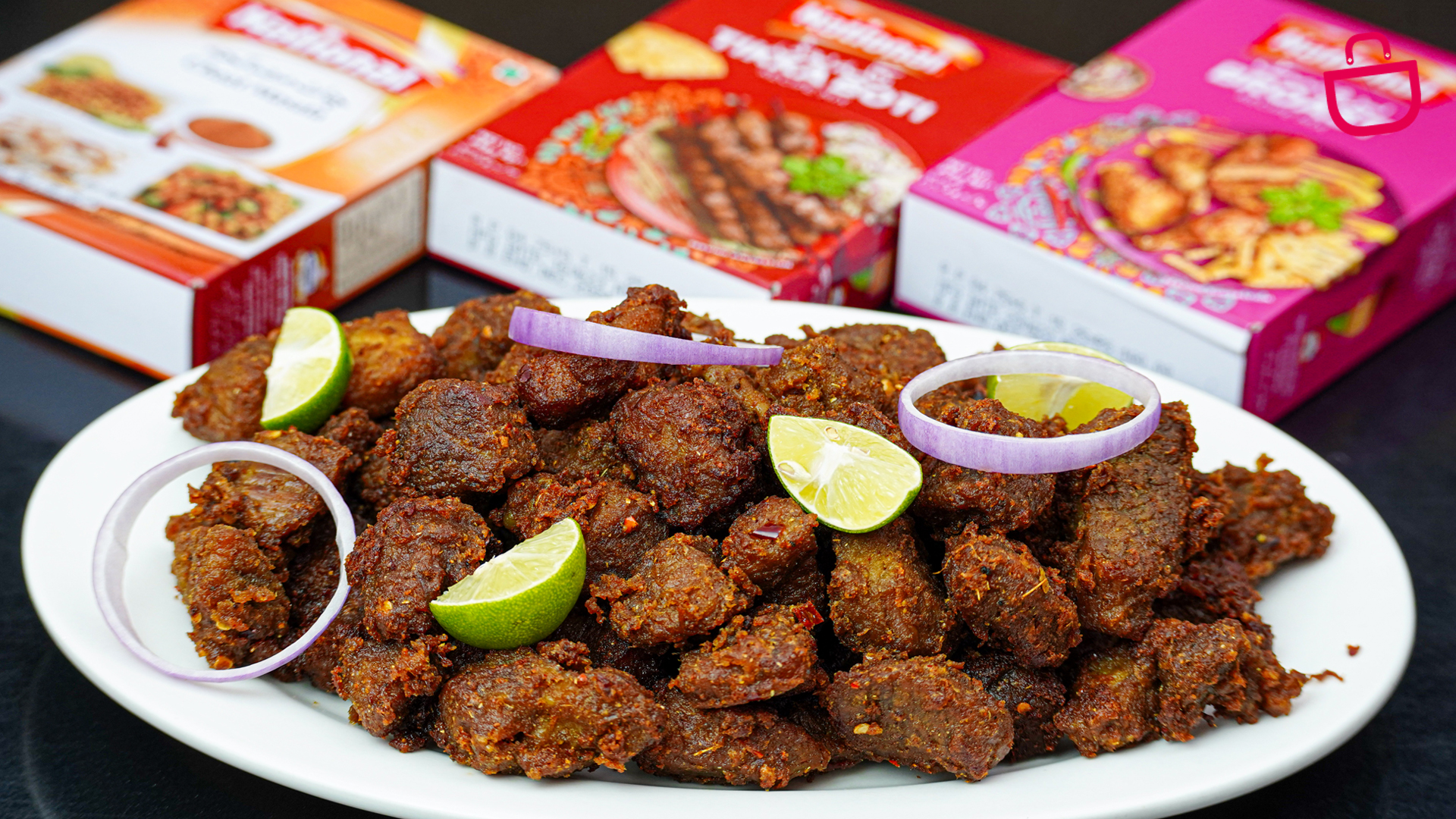 In a separate container, mix boiled beef with lemon juice, salt, cumin powder, chaat masala, red chili powder, and roasted chickpea flour.