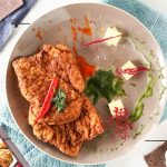 Chicken Ala Kiev is a lip-smacking continental chicken appetizer similar to that of a roulade. Chicken here is stuffed with some herb butter and cheese, and finally deep fried with National Broast batter, giving it a lovely texture and flavor that you will absolutely love.