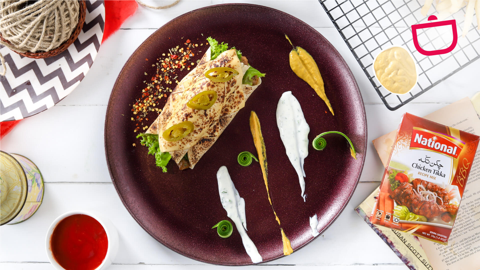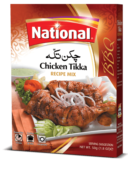 Marinate chicken pieces with 2 tbsp National Chicken Tikka Masala, 1 tbsp National Ginger Garlic Paste, 1 tsp National Red Chilli Powder,1 cup yogurt, 2 tbsp Lemon Juice – mix well and refrigerate it for ½ an hour.