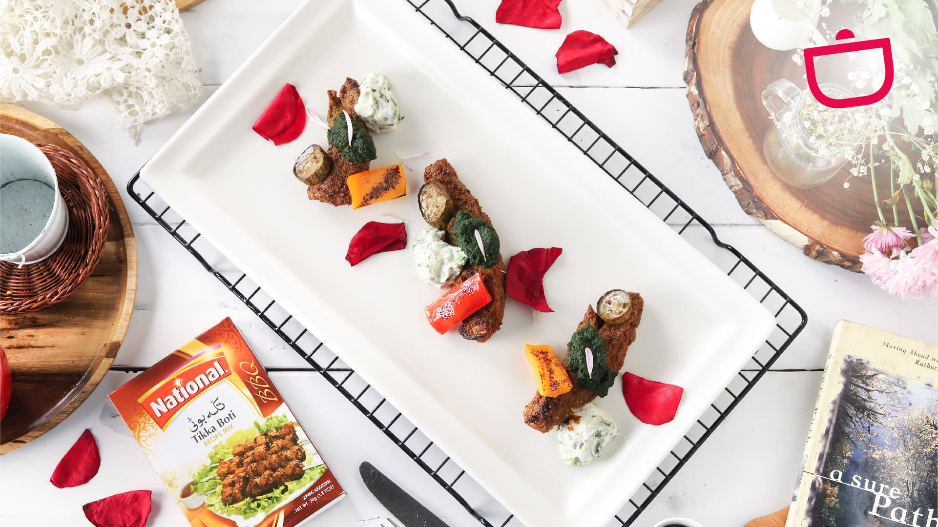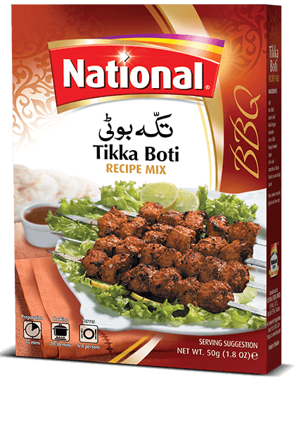 Marinate ½ Kg beef Undercut beef in ½ pack National Tikka Boti Masala, 1 tsp National Ginger Garlic Paste and 2 tbsp cooking oil overnight.
