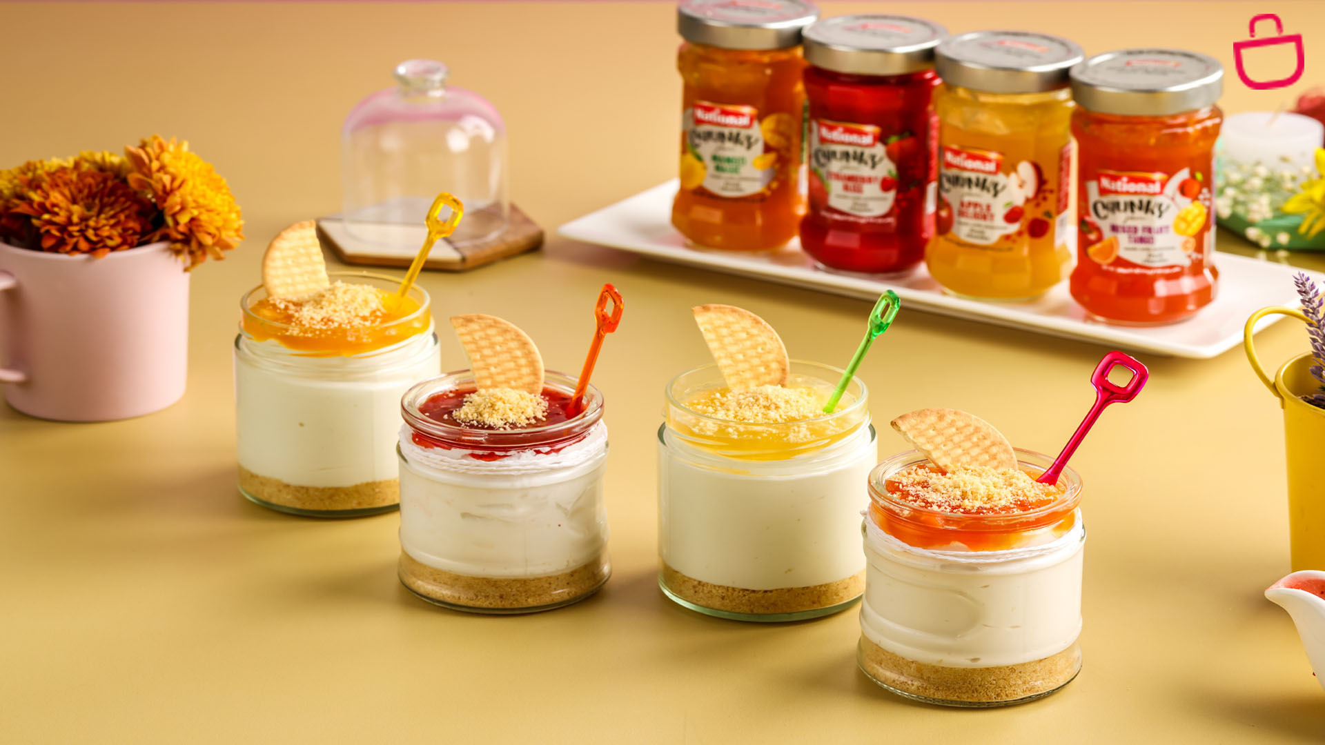 4 flavours of National chunky jam for topping