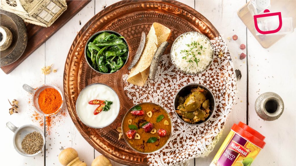 A Family that eats together, stays together. Serve your family and friends with a wholesome meal comprising of spiced vegetables, rich Palak Gosht and comforting Daal.