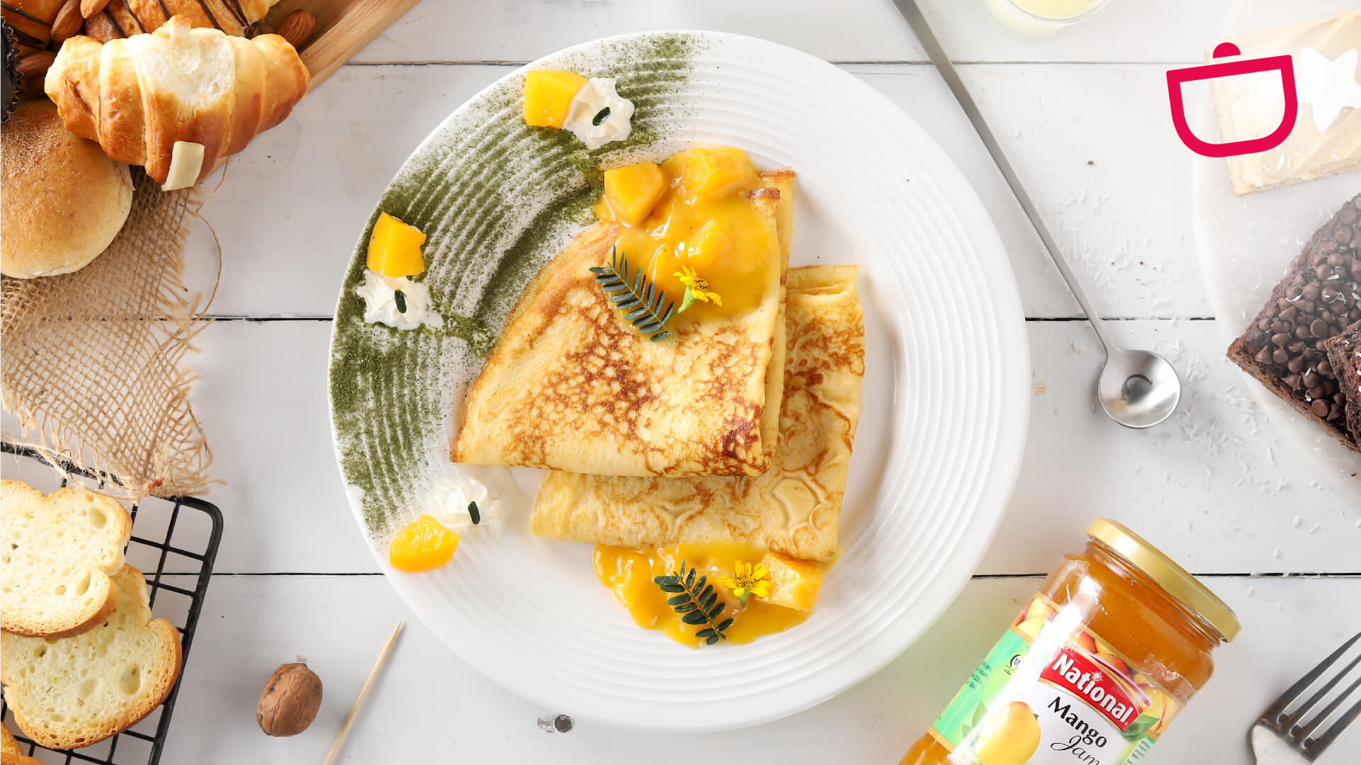 Classic Mango Crepes Suzette are bursting with a sweet mango flavor, topped with a delicious Mango Sauce, prepared only with National Mango Jam and National Mango Custard. Immensely gratifying to start your day with!