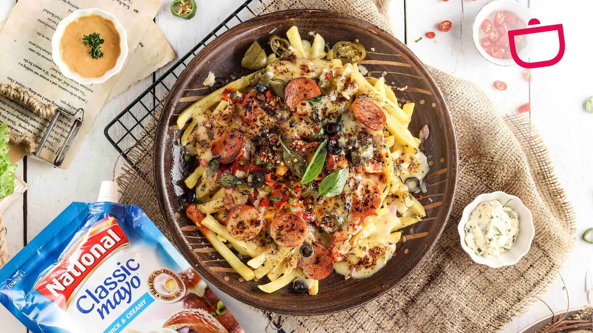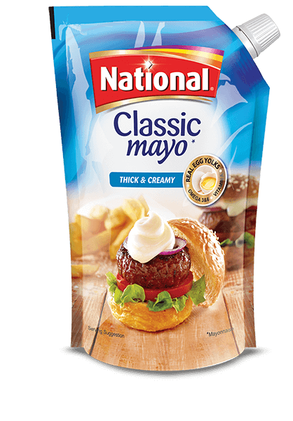 First prepare Ranch Sauce by mixing ½ cup National’s Mayonnaise, ½ cup Cream, 1-2 Clove Garlic, 1 tbsp Onion Chopped, ¼ tsp National Salt, 1/2 tsp Mustard Paste, 2 tbsp Green Onion, ) 1 tbsp Parsley (chopped), 1 tbsp Dill or Soya and ¼ tsp Ground Black Pepper.