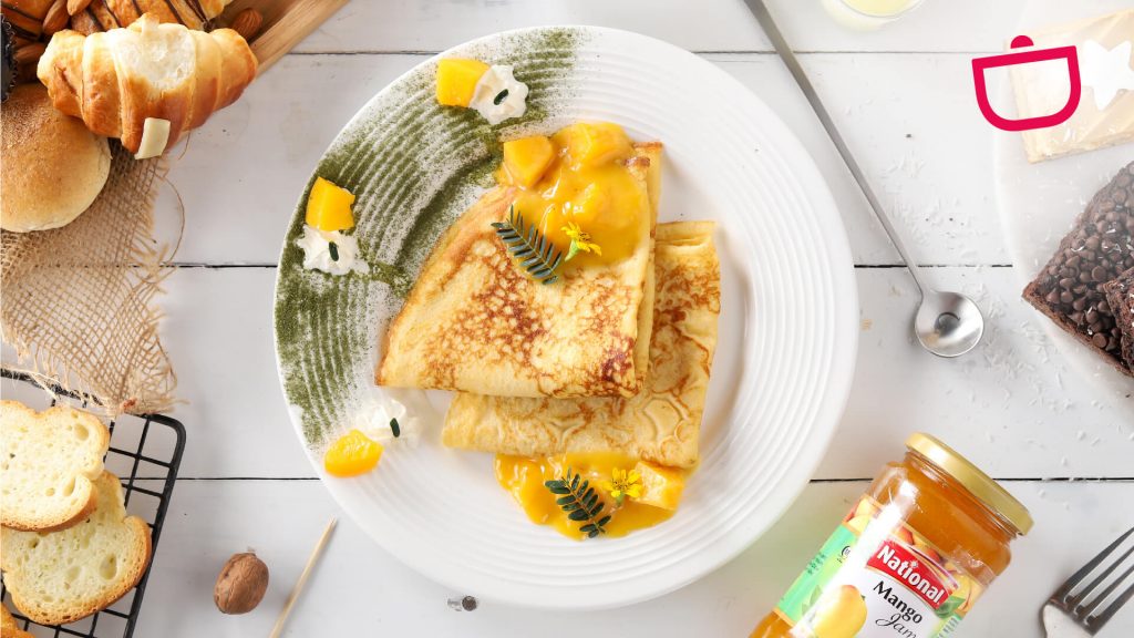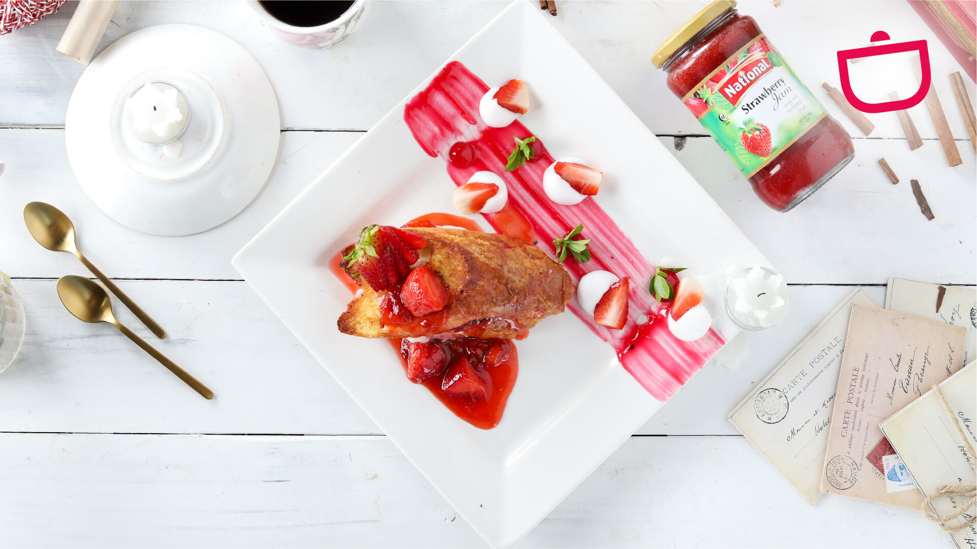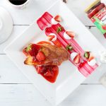 To serve the toast, spread 1 tbsp National Strawberry Jam, 1 tbsp Cream Cheese and 1 tbsp Strawberry Syrup. Sandwich between another French toast, garnish with leftover strawberries on top.